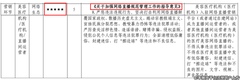 主要強(qiáng)調(diào)醫(yī)美的雙重合規(guī)性,執(zhí)業(yè)合規(guī)及直播合規(guī),對平臺直播運(yùn)營者提出合規(guī)要求。