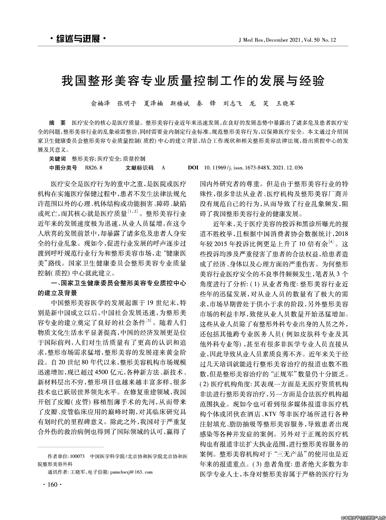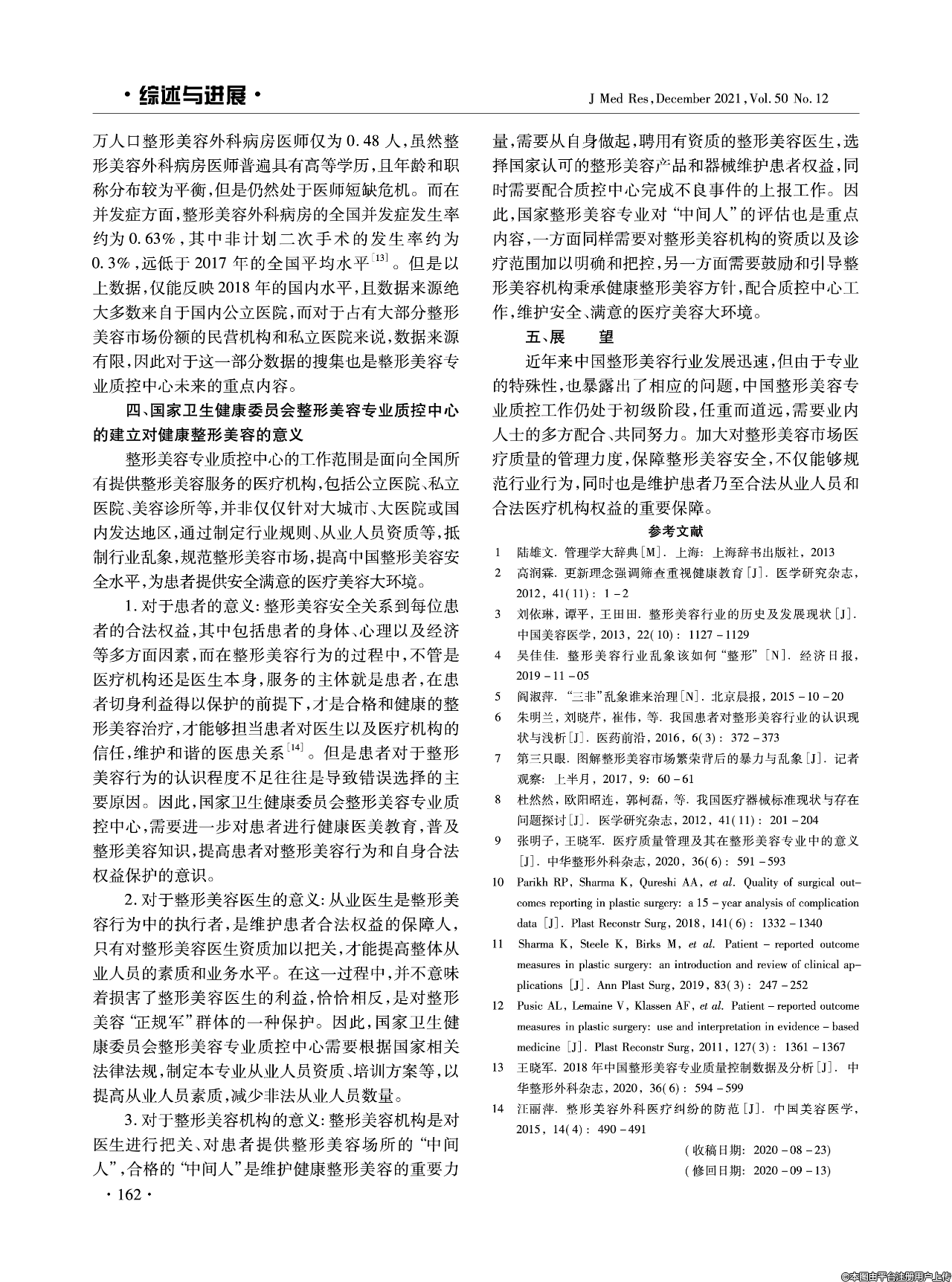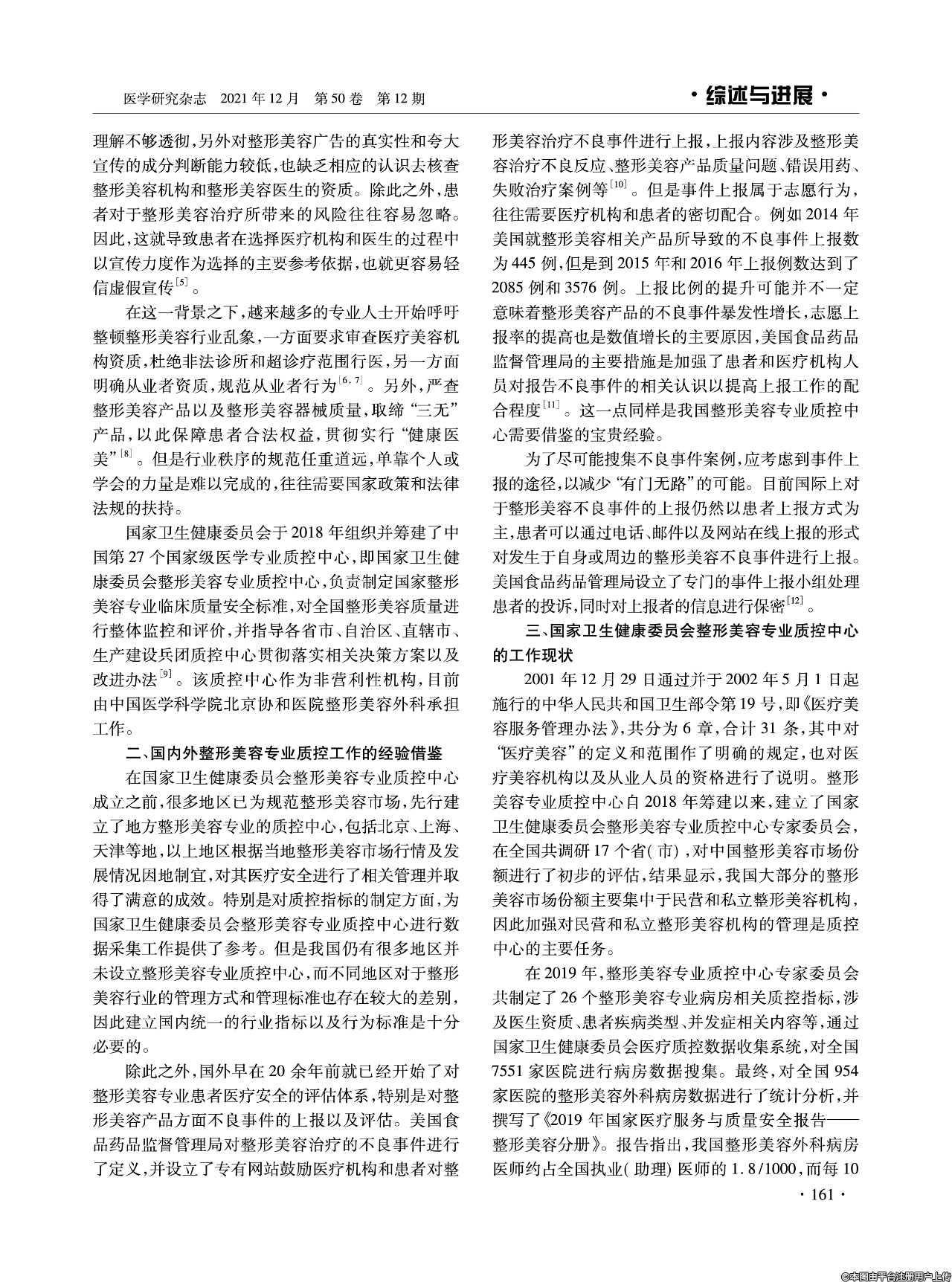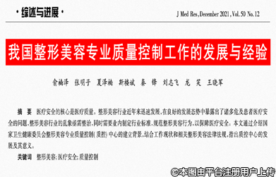 本文通過介紹國家衛(wèi)生健康委員會整形美容專業(yè)質(zhì)量控制(質(zhì)控)中心的建立背景,結(jié)合工作現(xiàn)狀和相關(guān)整形美容法律法規(guī),指出質(zhì)控中心的發(fā)展及其意義。