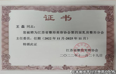 王磊主任連任江蘇省整形美容協(xié)會(huì)乳房整形分會(huì)主委