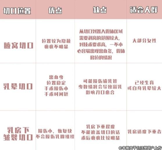而假體隆胸,目前會留下切口的部位主要有以下三個,有啥區(qū)別也在寫在下面了:
