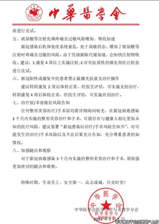隨著新冠肺炎疫情管控的放開,后續(xù)將不可避免地對新冠病毒感染者實施醫(yī)療整形美容的治療和操作,為確保醫(yī)療整形美容診療安全,中華醫(yī)學(xué)會印發(fā)了《關(guān)于新冠疫情時期整形美容醫(yī)療風(fēng)險管控指導(dǎo)意見》?,F(xiàn)轉(zhuǎn)發(fā)給大家,望各有關(guān)醫(yī)療美容機構(gòu)及從業(yè)人員嚴(yán)格按照指導(dǎo)意見的相關(guān)要求執(zhí)行,在診療中加以重視,務(wù)必盡到告知義務(wù),簽訂知情同意書,規(guī)范術(shù)前篩選及嚴(yán)格體檢,最大程度規(guī)避診療風(fēng)險,確保求美就醫(yī)者的安全及醫(yī)療整形美容行業(yè)的健康發(fā)展。