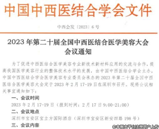為促進(jìn)中西醫(yī)結(jié)合醫(yī)學(xué)美容專業(yè)新技術(shù)新材料應(yīng)用的交流與合作,提高我國醫(yī)學(xué)美容行業(yè)的整體技術(shù)水平的發(fā)展,由中國中西醫(yī)結(jié)合學(xué)會(huì)主辦,中國中西醫(yī)結(jié)合學(xué)會(huì)醫(yī)學(xué)美容專業(yè)委員會(huì)承辦的2023年第二十屆全國中西醫(yī)結(jié)合醫(yī)學(xué)美容大會(huì),將于2023年2月17-19日在深圳市寶立方國際酒店召開。