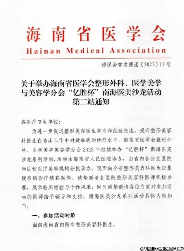 1、參加活動(dòng)對(duì)象:海南省內(nèi)所有整形美容科醫(yī)生