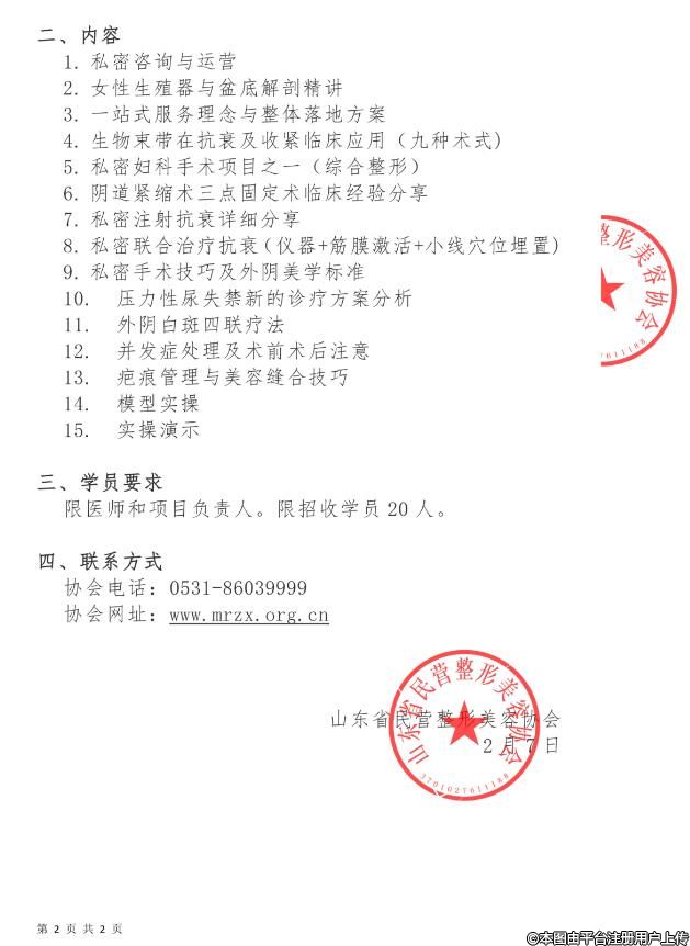 3月8日-9日第21期女性私密整形研修班(高級班)的通知