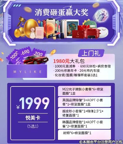 4月特惠 泉州美萊19周年1999元悅美卡(5選1)
