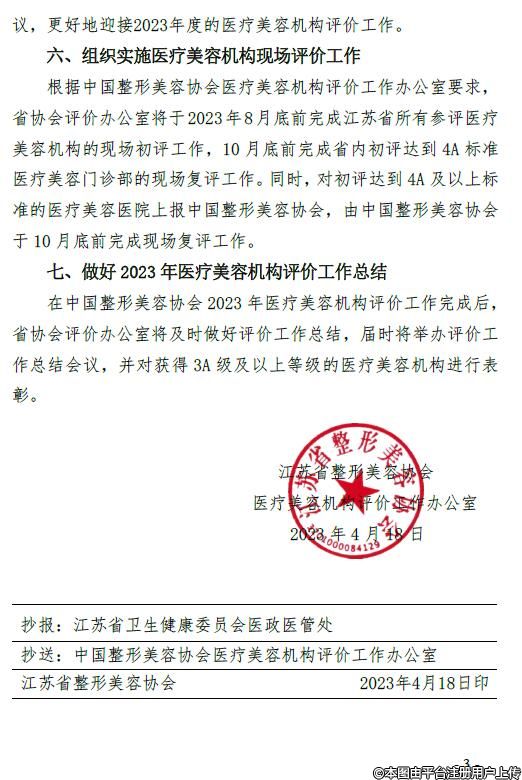 江蘇省整形美容協(xié)會(huì)2023年醫(yī)療美容機(jī)構(gòu)評(píng)價(jià)工作實(shí)施方案