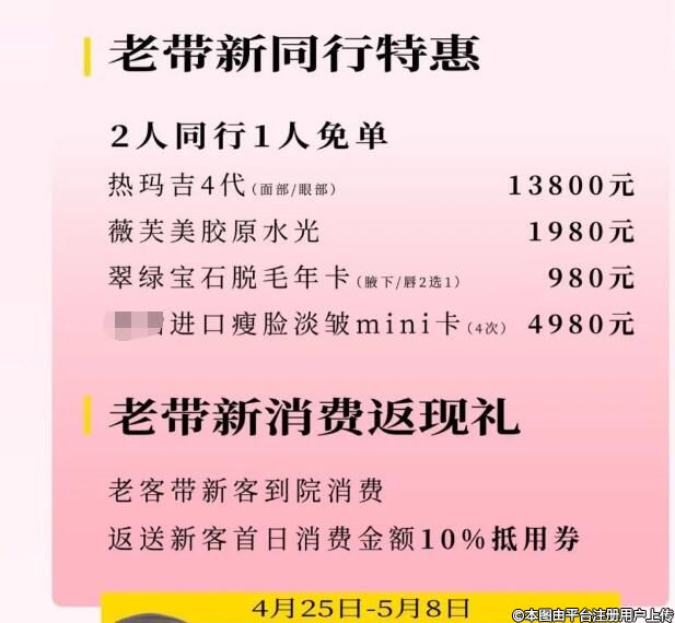 還有二人同行,一人免單活動,老會員帶新顧客到院還能享受,新顧客首日消費金額的10%抵扣券,當然是肥水不留外人田,喊上小姐妹們,一起來美吧~