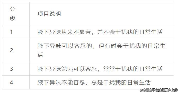 哪些人需要治療腋臭?首先我們了解一下腋臭分級:
