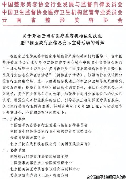 關于開展云南省醫(yī)療美容機構依法執(zhí)業(yè)暨中國醫(yī)美行業(yè)信息公示宣講活動的通知