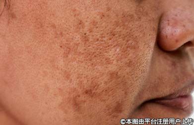 黃褐斑僅限于面部曝光部位,常在夏季日曬后誘發(fā)或加重。在生活中人們外出或開燈時,裸露在外的皮膚就會受到日光或其他強光的照射,時間久了人體皮膚不斷被氧化,從而分泌出大量的黑色素,因而導(dǎo)致色素沉淀形成黃褐斑。