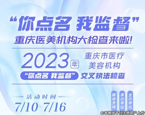 人民網(wǎng)重慶7月10日電(陳琦)7月10日,來自重慶市衛(wèi)生健康委的消息,10日起,2023年重慶市醫(yī)療美容機構(gòu)“你點名我監(jiān)督”交叉執(zhí)法檢查活動正式啟動,市民均可通過重慶市衛(wèi)生健康綜合行政執(zhí)法總隊官方微信公眾號“重慶衛(wèi)生健康衛(wèi)士”相關(guān)欄目進(jìn)行點名要求。