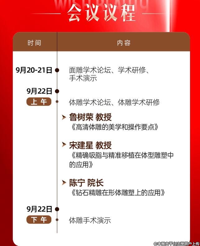 9月20日-21日,會(huì)議將舉辦面雕學(xué)術(shù)論壇。期間,與會(huì)專家將就面雕塑美進(jìn)行課題分享與手術(shù)演示。