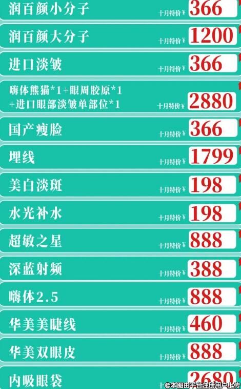 這次的醫(yī)美項目有點多,更有十月份專屬卡