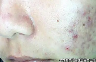 一般表現(xiàn)為初期發(fā)紅后,很快會化膿或者冒白頭,擠出有膿血。部分丘疹再度感染,演化成丘疹型膿皰,一般容易形成凹陷型疤痕。主要是由于微生物積聚造成的炎癥反應(yīng)。