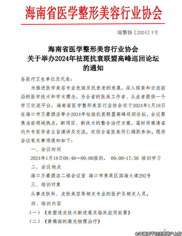 關(guān)于舉辦2024年祛斑抗衰聯(lián)盟高峰巡回論壇的通知