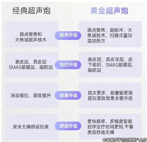 至于半島公司的兩款超聲抗衰產(chǎn)品——經(jīng)典超聲炮和黃金超聲炮,倒是可以比較一下。