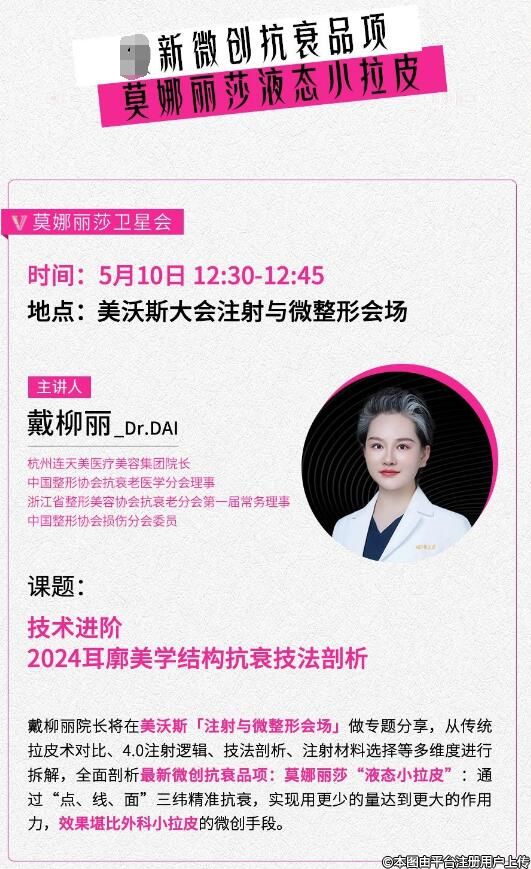 今年莫娜麗莎將在美沃斯大會,傳承“耳廓美學”核心價值,展示4.0打法的少量注射,提拉抗衰的前沿技術。5月10日,我們杭州“再”見!