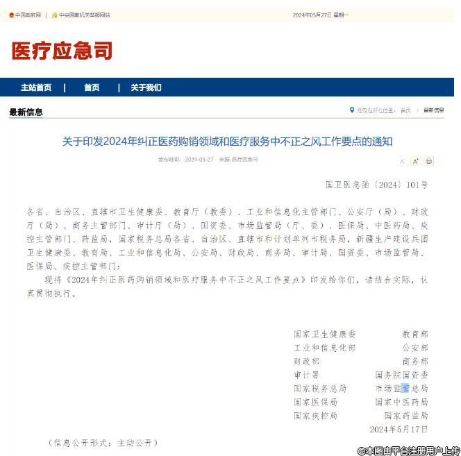 關(guān)于印發(fā)2024年糾正醫(yī)藥購銷領(lǐng)域和醫(yī)療服務(wù)中不正之風(fēng)工作要點(diǎn)的通知