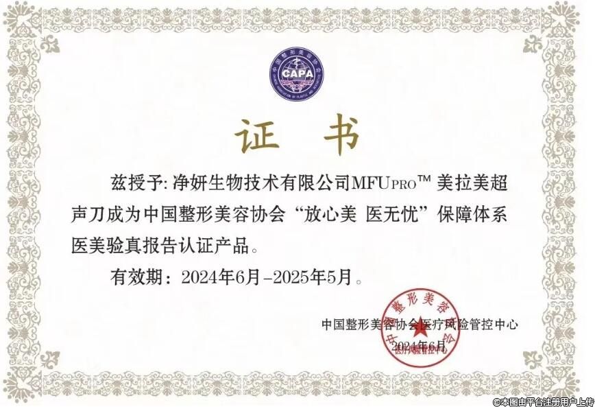 凈妍生物MFUpro美拉美超聲刀成為中國整形美容協(xié)會“放心美·醫(yī)無憂”保障體系醫(yī)美驗(yàn)真報告認(rèn)證產(chǎn)品。標(biāo)志著MFUpro美拉美超聲刀在保障消費(fèi)者權(quán)益、推動行業(yè)誠信建設(shè)方面邁著堅實(shí)步履。這不僅是對產(chǎn)品的高度肯定,更是對整個行業(yè)發(fā)出的積極信號;只有將誠信與質(zhì)量放在首位,才能贏得市場的長久信賴,共同推動醫(yī)美行業(yè)的可持續(xù)發(fā)展。