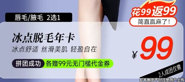 無錫麗都冰點脫毛年卡來咯!2人拼團(tuán)僅需99元