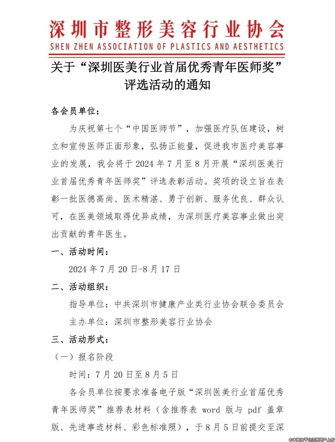 關(guān)于“深圳醫(yī)美行業(yè)首屆優(yōu)秀青年醫(yī)師獎”評選活動的通知
