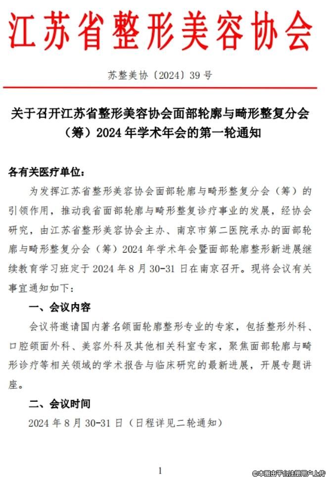 關(guān)于召開(kāi)江蘇省整形美容協(xié)會(huì)面部輪廓與畸形整復(fù)分會(huì)(籌)2024年學(xué)術(shù)年會(huì)的第一輪通知