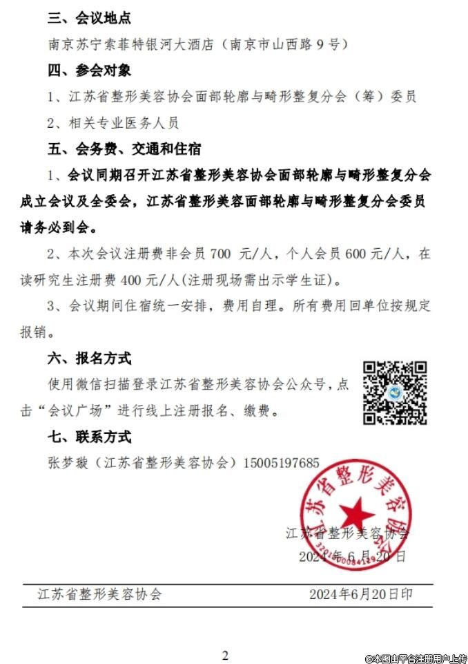 為發(fā)揮江蘇省整形美容協(xié)會(huì)面部輪廓與畸形整復(fù)分會(huì)(籌)的引領(lǐng)作用,推動(dòng)我省面部輪廓與畸形整復(fù)診療事業(yè)的發(fā)展,經(jīng)協(xié)會(huì)研究,由江蘇省整形美容協(xié)會(huì)主辦、南京市第二醫(yī)院承辦的面部輪廓與畸形整復(fù)分會(huì)(籌)2024年學(xué)術(shù)年會(huì)暨面部輪廓整形新進(jìn)展繼續(xù)教育學(xué)習(xí)班定于2024年8月30-31日在南京召開(kāi)。