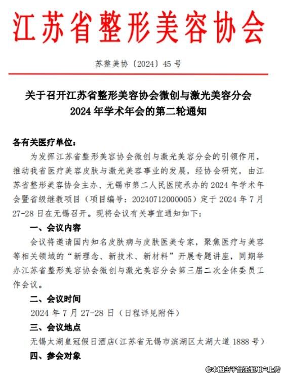 關(guān)于召開(kāi)江蘇省整形美容協(xié)會(huì)微創(chuàng)與激光美容分會(huì)2024年學(xué)術(shù)年會(huì)