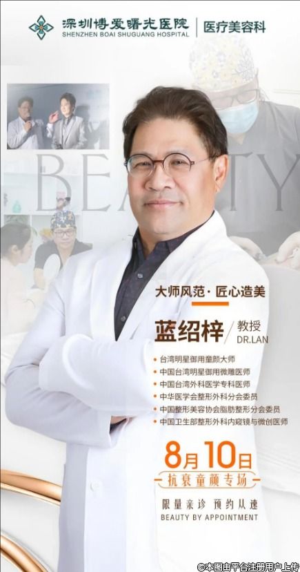 8月10日,臺(tái)灣明星御用童顏大師藍(lán)紹梓教授將在深圳博愛曙光醫(yī)院親診,小仙女們不用遠(yuǎn)赴韓國(guó)、臺(tái)灣,在家門口就能享受“明星同款”do臉?lè)桨浮?/p>