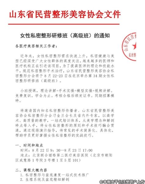8月22-23日第34期女性私密整形研修班(高級班)的通知