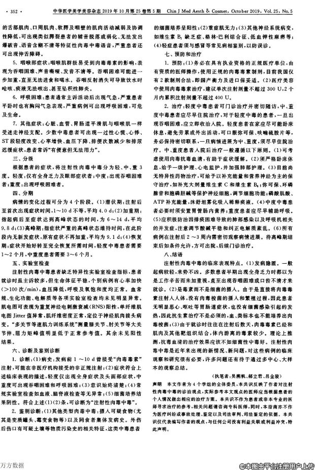 5.使用肉毒毒素前必須對患者進行全面的評估和咨詢,確保治療方案符合患者的實際情況。