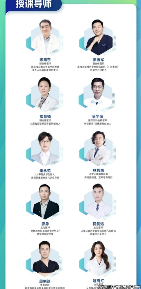 大咖+新秀雙師梯隊、經(jīng)典+新式雙術(shù)教學(xué)、美學(xué)+解剖雙向提升,旨在培養(yǎng)緊貼市場需求的注射美容新秀。同時再通過導(dǎo)師帶學(xué)鞏固學(xué)習(xí)成果,幫助實訓(xùn)醫(yī)生真正系統(tǒng)掌握注射美容核心技巧。