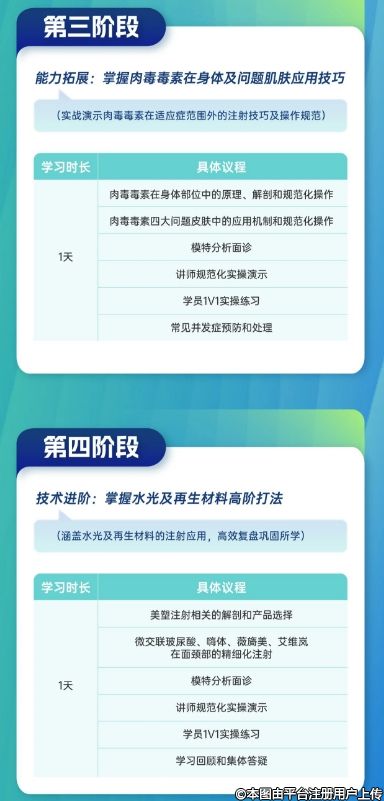 以精準(zhǔn)嫻熟掌握肉毒毒素注射技巧為教學(xué)目的,就肉毒毒素在面頸部、身體以及問題皮膚治療的應(yīng)用,圍繞注射點位、結(jié)構(gòu)、層次等要點,通過面診分析、實戰(zhàn)演示、上手實操等全維度的教學(xué)設(shè)計,開啟肉毒毒素注射第一針。