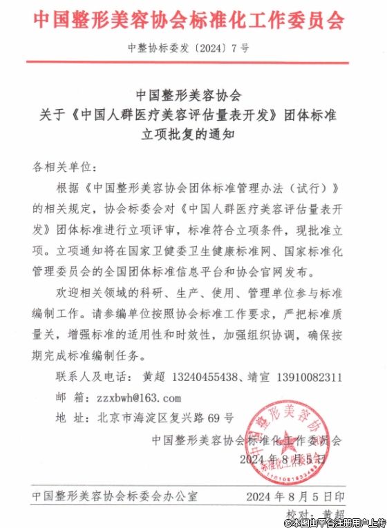 《中國(guó)人群醫(yī)療美容評(píng)估量表開(kāi)發(fā)》團(tuán)體標(biāo)準(zhǔn)立項(xiàng)批復(fù)的通知