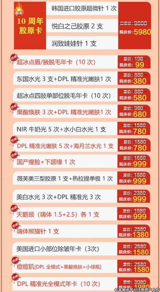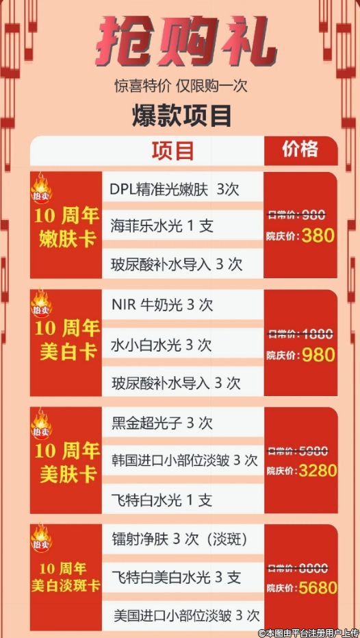 4、特價(jià)項(xiàng)目/已核銷概不退款,周年慶活動(dòng)不與院內(nèi)其他活動(dòng)同時(shí)享受;