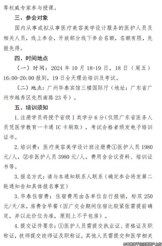 2.培訓(xùn)費(fèi):醫(yī)療美容美學(xué)設(shè)計(jì)班注冊費(fèi)①醫(yī)護(hù)人員 1980元/人,②非醫(yī)護(hù)人員 3980元/人。費(fèi)用含會(huì)議資料、培訓(xùn)證書等。