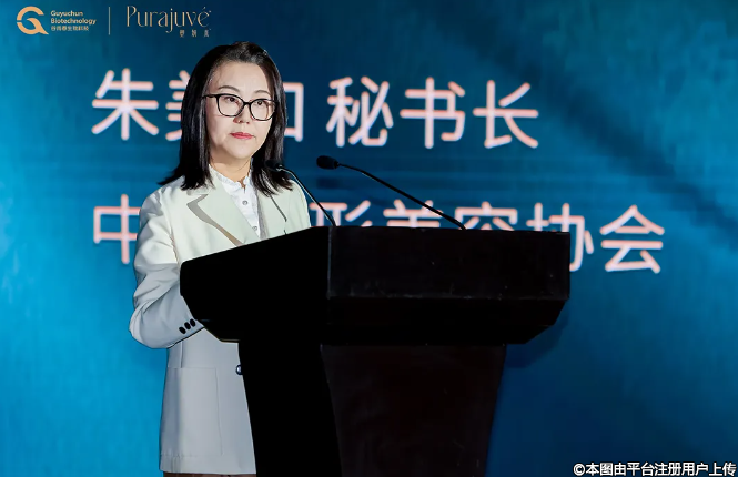 會議分享伊始,中國整形美容協(xié)會朱美如秘書長,率先上臺進(jìn)行分享。她選擇的話題聚焦于“醫(yī)療美容行業(yè)材料合規(guī)與材料發(fā)展”。首先,朱美如女士對塑妍真品牌的發(fā)布儀式表達(dá)了美好的祝愿。