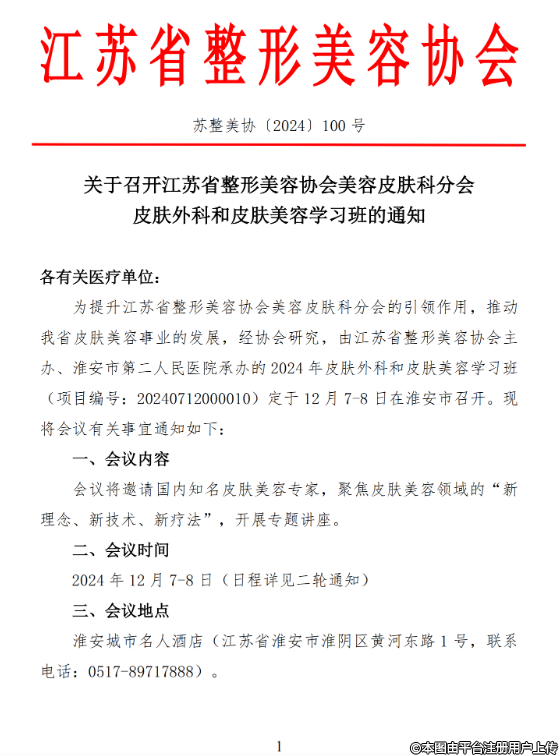 關(guān)于召開江蘇省整形美容協(xié)會(huì)美容皮膚科分會(huì)皮膚外科和皮膚美容學(xué)習(xí)班的通知