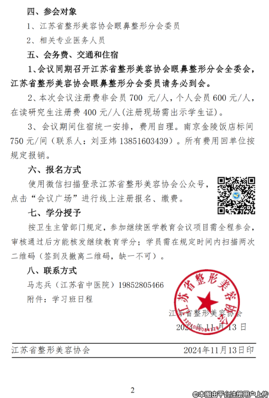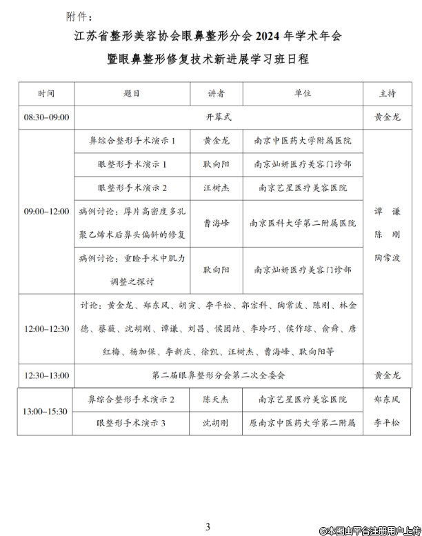 江蘇省整形美容協(xié)會眼鼻整形分會2024年學術年會暨眼鼻整形修復技術新進展學習班日程