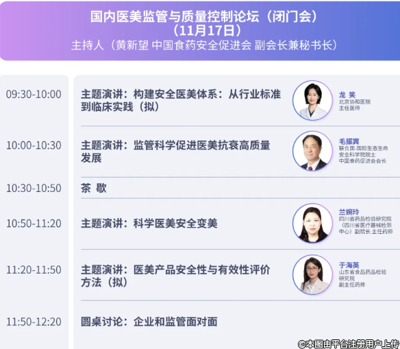 監(jiān)管與質(zhì)量控制論壇,匯聚國內(nèi)審評監(jiān)管領(lǐng)域的權(quán)威專家,解析醫(yī)美用醫(yī)療器械的質(zhì)量標(biāo)準(zhǔn)、審批流程,探討如何提高醫(yī)美機(jī)構(gòu)的服務(wù)質(zhì)量,推動國內(nèi)醫(yī)美行業(yè)高質(zhì)量合規(guī)發(fā)展。