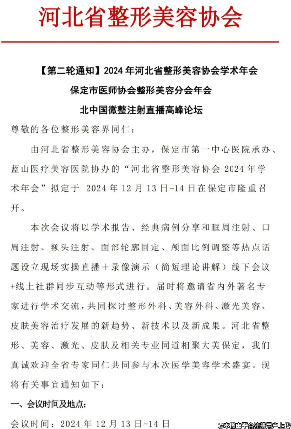 【第二輪通知】2024年河北省整形美容協(xié)會學術年會保定市醫(yī)師協(xié)會整形美容分會年會北中國微整注射直播高峰論壇