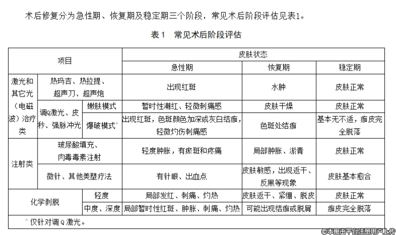 規(guī)范中明確規(guī)定了皮膚醫(yī)療美容術后修復的總體要求、適用范圍和禁忌、修復階段及用品、修復評估、操作規(guī)范以及并發(fā)癥處理等多方面內(nèi)容。尤其強調了術后修復的關鍵重要性,并提出了一系列核心原則。