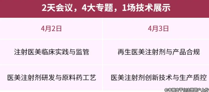 BIA 2025 亞洲注射醫(yī)療美容峰會(huì)(Beauty Injection Asia)將于2025年4月2-3日在上海舉行,屆時(shí)將深入探討注射醫(yī)美與產(chǎn)品合規(guī)監(jiān)管、醫(yī)美注射劑研發(fā)與原料藥工藝、再生醫(yī)美注射劑與創(chuàng)新工藝技術(shù)、醫(yī)美注射劑生產(chǎn)與質(zhì)控等關(guān)鍵議題。