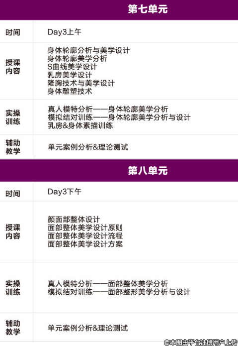 包括醫(yī)美設計師職業(yè)標準、生涯規(guī)劃;容貌分析美學基礎、流程與方法;面相學基礎與運用;眼鼻微美學設計、面部輪廓美學設計、整美學與設計、具體輪廓美學分析與設計等。