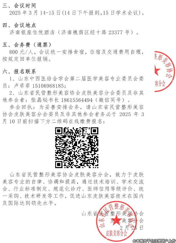 邀請函丨山東省皮膚美容項目分級管理交流會暨山東中西醫(yī)結(jié)合學(xué)會醫(yī)學(xué)美容專業(yè)委員會2025年學(xué)術(shù)年會