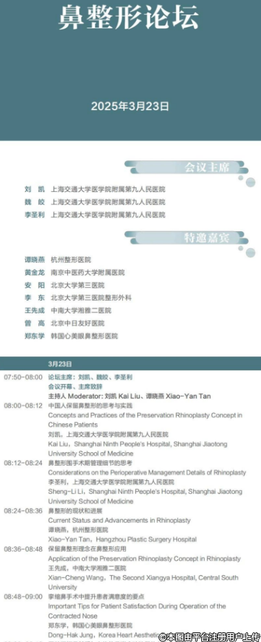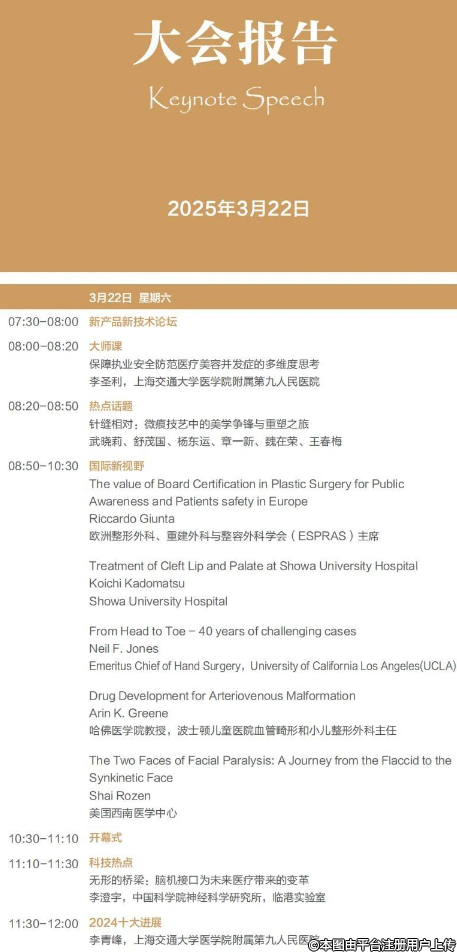 論壇完整議程 I 上海整形科技周2025
