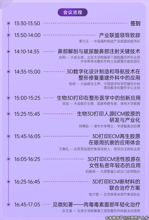 2025年3月26日,北京海淀清華科技園,一場聚焦3D打印ECM膠原的學術盛宴即將開啟。我們誠邀您與行業(yè)專家共聚一堂,深入探討這一創(chuàng)新材料的奧秘,共同見證再生醫(yī)學與皮膚美容的融合創(chuàng)新,攜手開創(chuàng)醫(yī)美行業(yè)更加美好的未來!