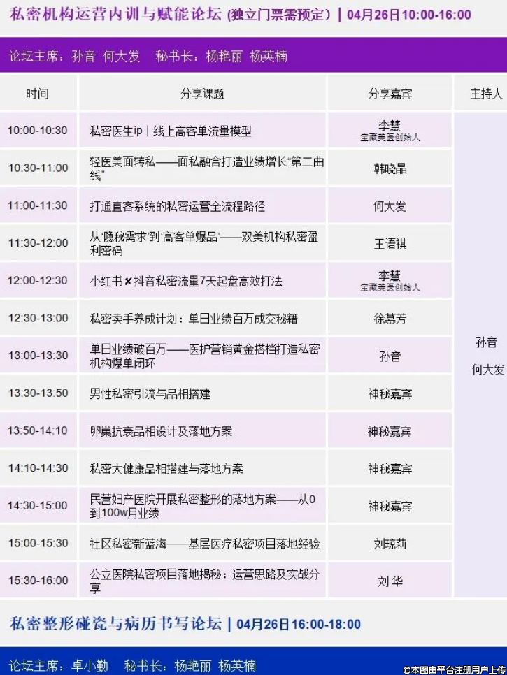 大會設(shè)立10大板塊24個(gè)分論壇,以視頻講解和案例演示的形式展開。從私密整形技術(shù)、操作視頻、接診查體、咨詢運(yùn)營、最新獲客等方面開設(shè)系列私密整形論壇,為轉(zhuǎn)型私密生殖整形提供了系統(tǒng)化學(xué)習(xí)。大會匯集了權(quán)威私密整形專家、注射美容專家、激光美容專家展開變美與安全的研討。AI醫(yī)學(xué)辯論會,AI數(shù)字醫(yī)生大屏問診互動,AI自動獲客作為大會3大亮點(diǎn),引領(lǐng)與會人員抓住AI數(shù)字轉(zhuǎn)型先機(jī)。