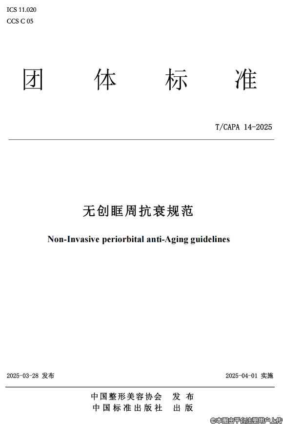 根據(jù)《中國(guó)整形美容協(xié)會(huì)標(biāo)準(zhǔn)化工作管理辦法》的相關(guān)規(guī)定,《無(wú)創(chuàng)眶周抗衰規(guī)范》團(tuán)體標(biāo)準(zhǔn)已經(jīng)完成立項(xiàng)、起草、征求意見和審查等標(biāo)準(zhǔn)制定流程,由中國(guó)整形美容協(xié)會(huì)抗衰老分會(huì)負(fù)責(zé)組織制定,經(jīng)協(xié)會(huì)團(tuán)體標(biāo)準(zhǔn)委員會(huì)審批通過(guò),批準(zhǔn)《無(wú)創(chuàng)眶周抗衰規(guī)范》(T/CAPA 14-2025)團(tuán)體標(biāo)準(zhǔn)正式發(fā)布,自2025年4月1日起實(shí)施。