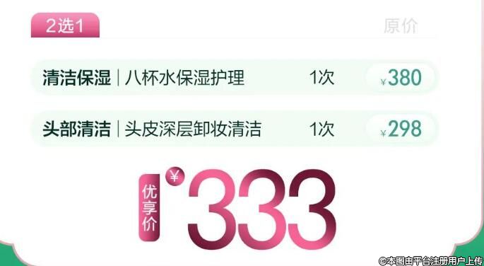 福利價333元=2個高配項目+1次保濕護理